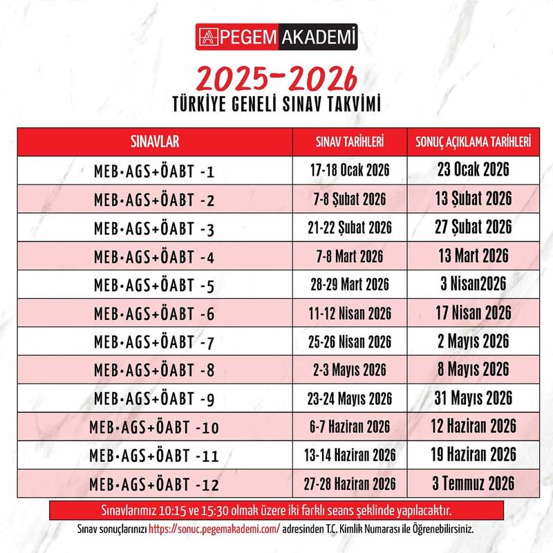 2025-2026 MEB-AGS ÖABT Türkiye Geneli Sınav Takvimi