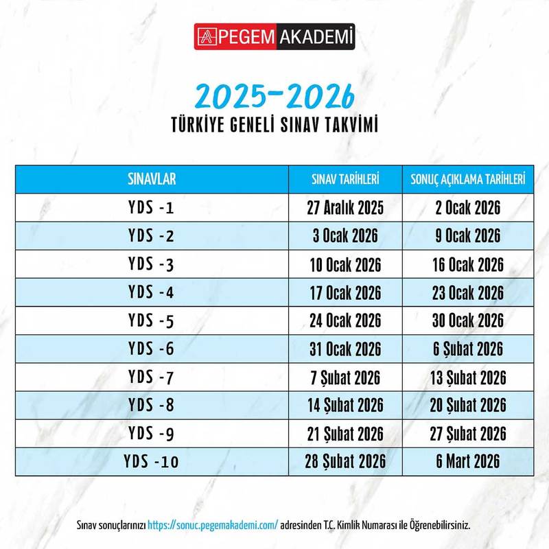 2025-2026 YDS Türkiye Geneli Sınav Takvimi